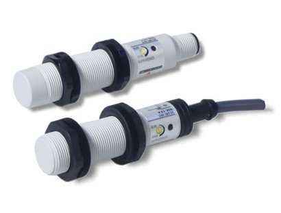 Capacitive sensors in M18 thermoplastic body with adjustable (potentiometer) sensing range of 3 - 8 mm or 3 - 12 mm. The CA18CL ... are two-wire sensors with AC wide area power supply and output NO or NC (depending on model).