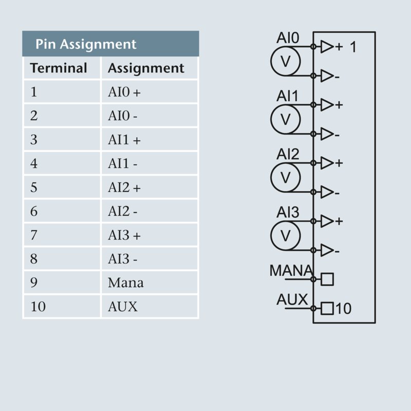 - Measuring ranges 0 ... 24 V, ±24 V, individually configurable for each channel