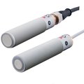 Ultrasonic sensors in M18 plastic body with sensing up to 40 cm or 90 cm or 2,2 m. There is microprocessor control of the digital filtering that makes the sensor immune to most electromagnetic interferences and the output is one analog (positive or negative slope) and one digital. On the body of the sensors there is a teaching button for the programming of function, outputs etc.