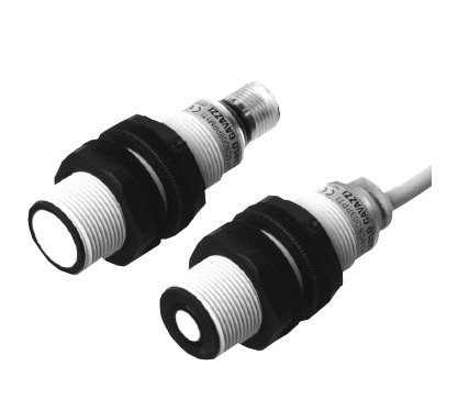 Ultrasonic sensors in M18 plastic body with sensing up to 30 cm or 80 cm. There is microprocessor control of the digital filtering that makes the sensor immune to most electromagnetic interferences and the output is one analog with positive or negative slope in 0-10 V or 4-20 mA. The adjustments are ‘’teach by wire’’.