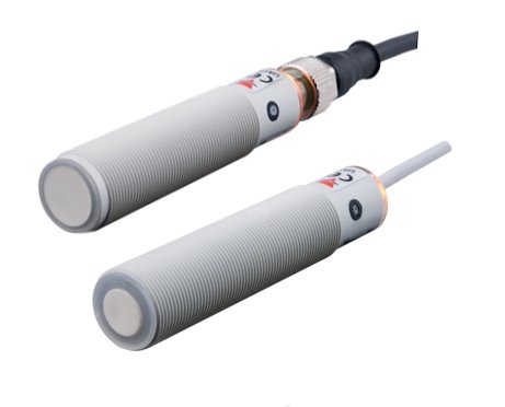 Ultrasonic sensors in M18 plastic body with sensing up to 220 cm. There is microprocessor control of the digital filtering that makes the sensor immune to most electromagnetic interferences and 2 digital outputs. Adjusted by teach-in button on the sensor.