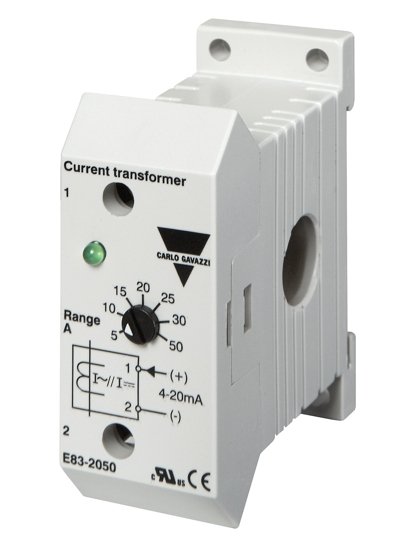 AC current analog metering transformer with knob 7 current ranges (0 - 50 Α). Output 4 - 20 mA DC. Carlo Gavazzi