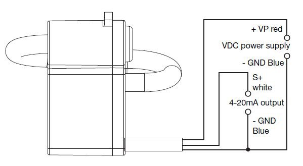 The output signal is proportional to the measured input with a range from 4mA to 20mA DC. The sensor has to be fixed directly around the main primary cable.