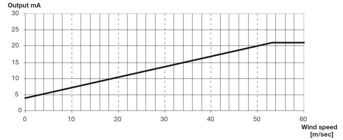 Output: 4-20 mA (0m/s = 4 mA and 50m/s = 20 mA)