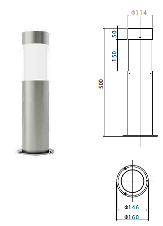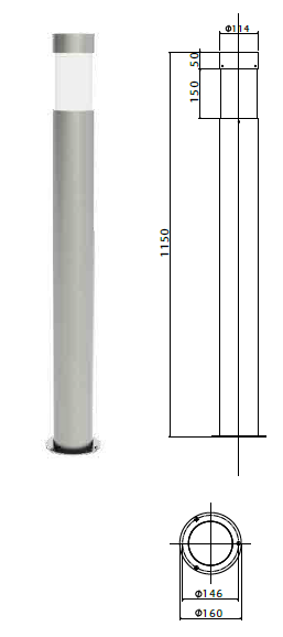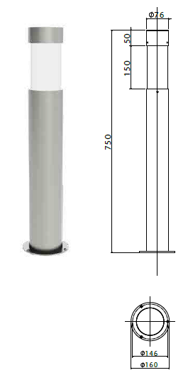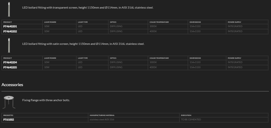 Bollard luminaires in stainless steel AISI 316L.