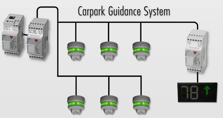 Carpark III is the third generation of Carlo Gavazzi's Parking Guidance System. The new system features a sensor for mounting at the space entry and with built-in multi-colour LED indicator. A unique feature of the system is the integrated option to save energy by controlling lighting and ventilation according to demand.
