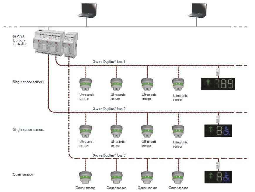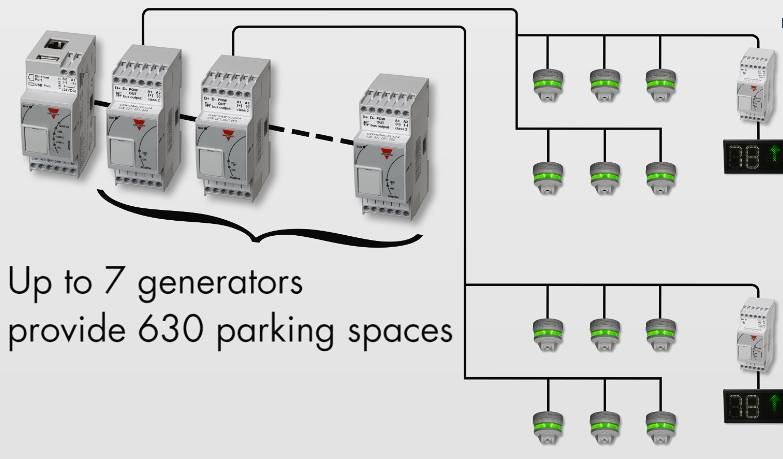 The Parking Guidance System uses sensors/indicators and displays with arrows to guide the drivers to the vacant spaces in indoor carparks. The unique feature of the system is the integrated option to save energy by controlling lighting and ventilation according to demand