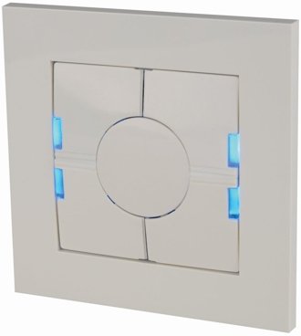SHA4XLS4P90L: Programmable light switches developed to fit into wall socket and frames from Fuga, NIKO, and Bticino, with 4 buttons, 1 white / 5 blue LEDs and integrates passive infrared presence/movement detector (90° / 10m) and a luxmeter sensor (0 to 20 klux) just in one item for smart-house / building automation applications (light control, roller blinds, air-conditioning, intruder alarms and many other functions supported by the smart-house controller).