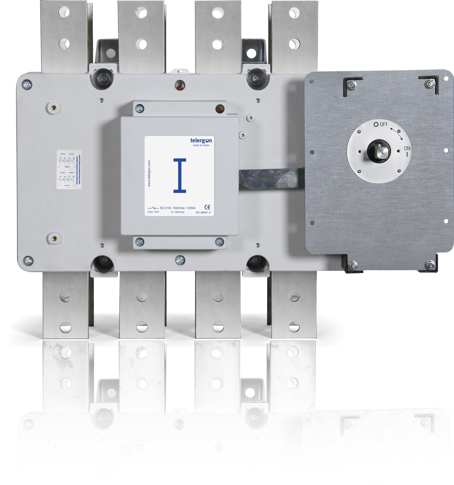 Switch–disconnectors 3 x + 3 x 0-I 1000A/1500 VDC , 4 x + 4 x 0-I 1250A/1500 VDC with capability of multi-point breaking (arc break) on-load, in strip connection and position of the switch (handle) on the right. Suitable for correct disconnection on DC loads especially on photovoltaic systems.