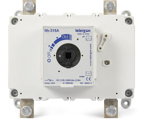 Switch–disconnectors 1 x + 1 x 315, 400Α/1500 VDC prefabricated with internal bridging , in strip connection and position of the switch (handle) on the middle, designed for easy installation. Suitable for correct disconnection on DC loads especially on photovoltaic systems.