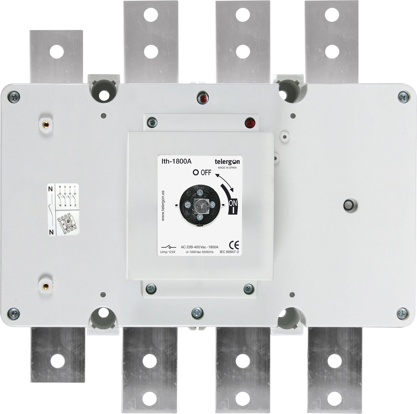 Switch – disconnectors AC on-load, are available from 1000A-1250A-1600A-1800A-2000Α in 3 x , 3 x +N & 4 x versions under request on order. Rated breaking current of up to 8 times the rated operational current, with ability to establish and support short circuit currents up to 100kA. Uninterrupted duties in extreme tropic and polar conditions, as well as the polluted environment of any industrial process. Protection against accidental over voltages in equipments connected between phase and neutral (our standard 3 x +N) with advanced switched neutral pole (early make – late break).