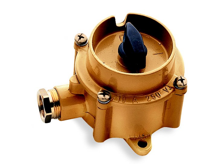 - One-way switches UNAV 2162 in solid brass with UNAV 1948 cable glands 250V IP66