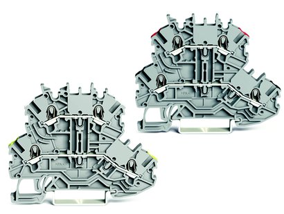Push-in CAGE CLAMP® gray double-deck terminal block 1,00 mm² (Through terminal block L/L) without marker carrier for KNX applications. For DIN-rail 35 x 15 and 35 x 7.5
