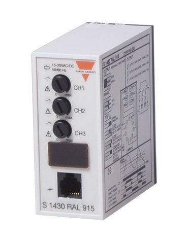 μ-Processor controlled amplifier for 3 pairs of photoelectric sensors (type MOFT/R), with continuous monitoring of righ condition and function. The S1430… have adjustable sensitivity for each channel and three independent outputs. The connections and mounting is on 11 pin base and the outputs are via a front slot for the 6IODC interface connection (6IODC is the output interface with 3 transistors or relay outputs).
