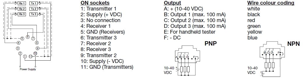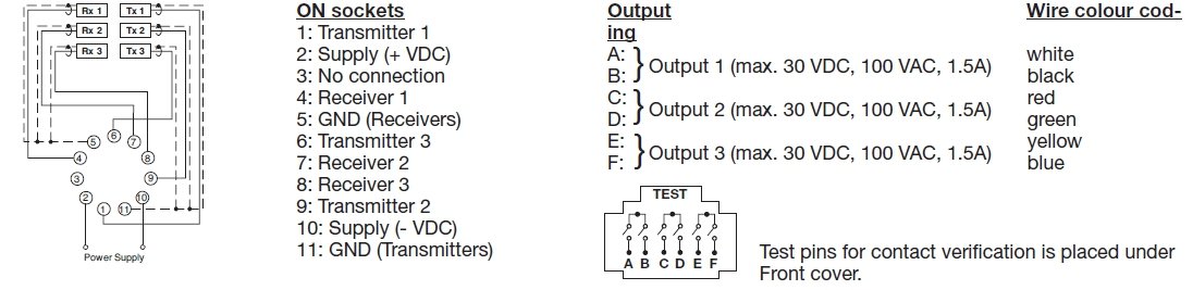 - Function: Multiplex system amplifier unit for 3 pairs of through-beam photocells