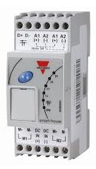 The SHDRODC230 is a decentral module to control one AC rollerblind motor. It has been developed to be connected to and controlled by the smart-house system controllers. The rollerblind motor is driven by two relays in series: one to switch the motor ON/OFF and the second one to control the direction UP/DOWN. These two relays are controlled in such a way as to respect the motor timing before any reversing of the motor direction.