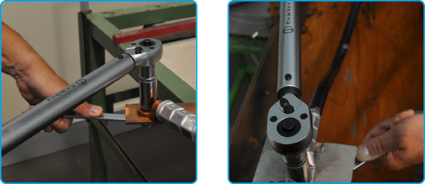 Cembre professional reversible torque wrench range TWC will provide optimum torque setting when the threaded fastenings are paired with the corrects size sockets.