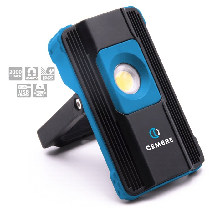 Rechargeable portable headlight (torch) for medium spaces & power-bank (2.000 lumen). Cembre