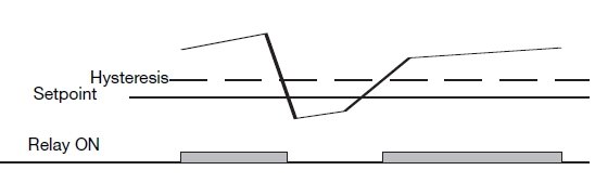 DC under voltage monitoring relays for voltage level of batteries with measurement via the power supply. There are separate potentiometers for setpoint and hysteresis (4-50%).