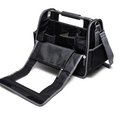 Practical tool bag in robust fabric, with 2 separate compartments to neatly arrange hand tools. Additional equipment may be accommodated via handy hooks and external pockets while documents are safely stored inside. A shoulder strap and sturdy metal handle make it easy to carry.