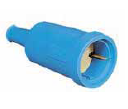 Schuko plugs and connectors in rubber or hermoplastic and blue color RAL5015.