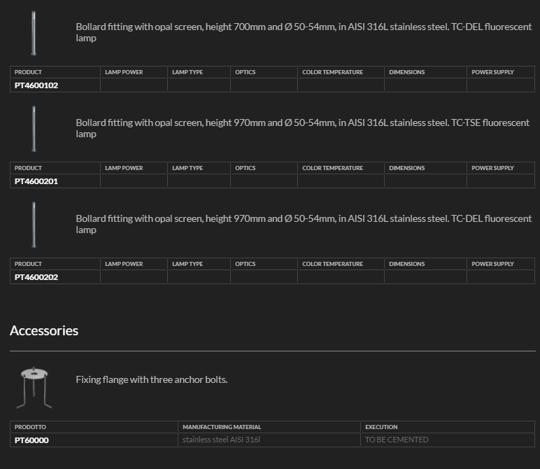 Bollard luminaires in stainless steel AISI 316L. With its minimal, evergreen design and its diffuse lighting it is ideal for gardens and parks.