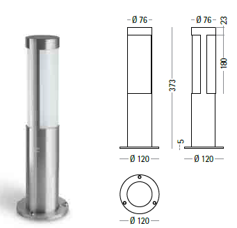 Bollard luminaires in stainless steel AISI 316L.