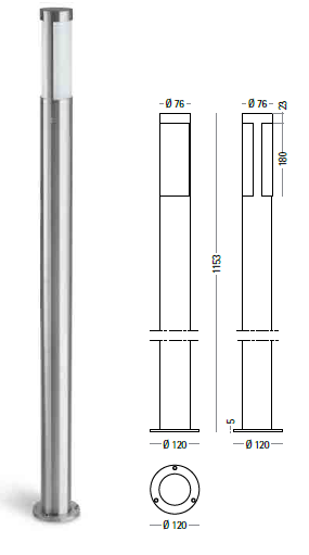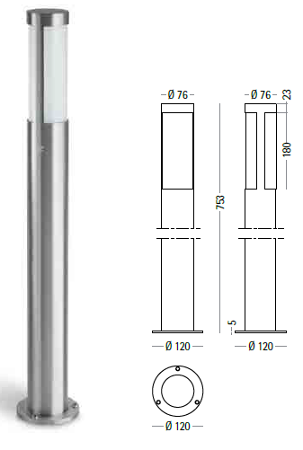 Bollard luminaires in stainless steel AISI 316L. With its minimal, evergreen design and its diffuse lighting it is ideal for gardens and parks.