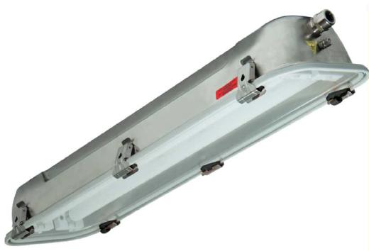 Watertight light fixtures in AISI 304 stainless steel for applications in explosion hazardous areas as defined in ATEX 2014/34/EU Directive. The diffuser is made of tempered glass. The fixing hooks are in AISI 304 stainless steel.