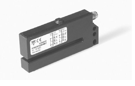 A fork photo sensor in a strong aluminum. Ideal for detection of labels, marks, double sheets, holes, edges and many other applications. Detection of transparent material