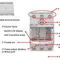 Complete imported/exported (KWh x 2 tariffs) energy analysis on Backlit LCD touch screen!