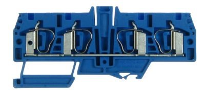 Grey terminal blocks for normal use and blue color for neutral connection.
