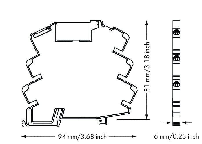 Relay module with yellow LED and 1 x NO+NC contact. Supply 24 or 115 or 230 V AC/DC. WAGO