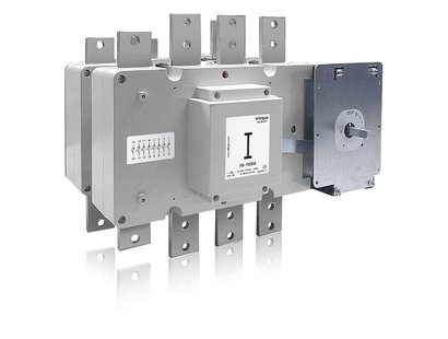 Changeover switches AC on-load in strip connection and position of the switch (handle) on the right , are available from 1600A-1800A-2000A in 3 x – 3 x +N & 4 x versions under request on order. Rated breaking current of up to 8 times the rated operational current, with ability to establish and support short circuit currents up to 100kA. Uninterrupted duties in extreme tropic and polar conditions, as well as the polluted environment of any industrial process. Protection against accidental over voltages in equipments connected between phase and neutral (our standard 3 x +N) with advanced switched neutral pole (early make – late break).