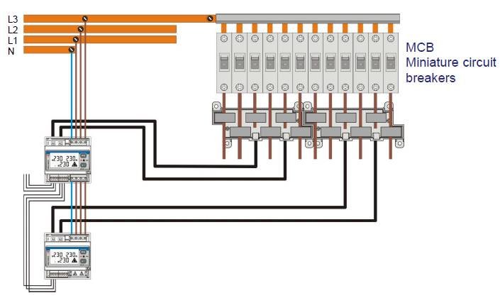 Multiple energy/analyzer meter up to 32 A for 1 or 3 phase loads (via multiple current transformer). Carlo Gavazzi