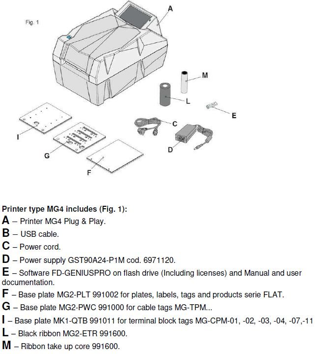 Printer type MG4 includes: