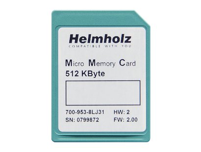 The Helmholz micro memory cards with a capacity of 64 kByte, 128 kByte, 256 kByte, 512 kByte, as well as 1 MB, 2 MB, 4 MB and 8 MB are suitable for use in S7-300* and ET200S with CPU controllers of Siemens AG.