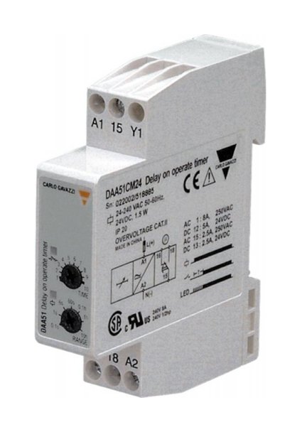 Carlo Gavazzi multi-voltage Delay-On mini-DIN timers with 1 or 2 contacts. Time range: 0.1 s - 100 h