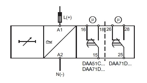- DAA71 output: relay 5 Α (2 x NO+NC)