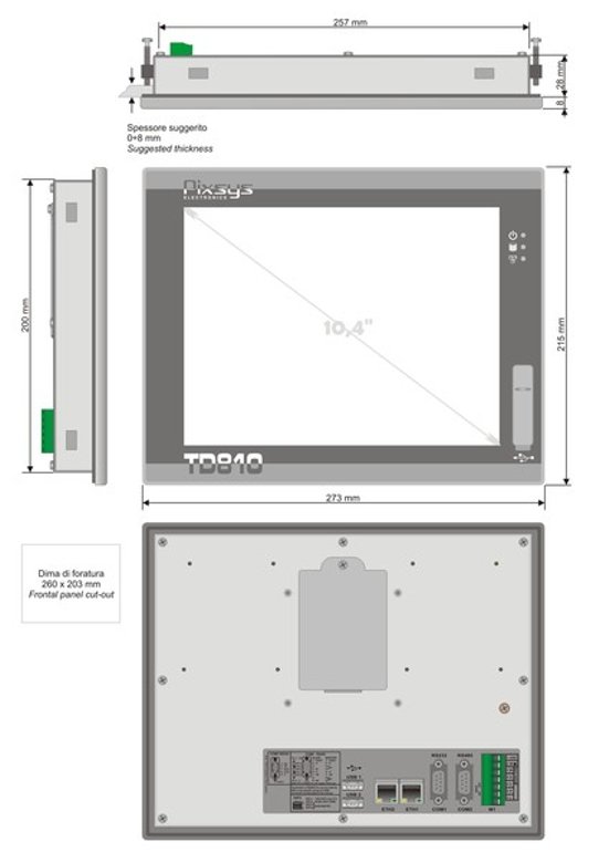 HMI touchscreen 10.4” (800x600) with integrated soft-PLC. PIXSYS