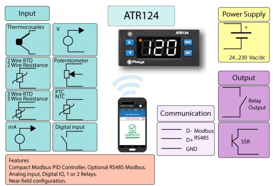 ATR124 is a compact PID controller and it is the entry-level model in the Blue Line series, of which it shares all the distinctive features starting with programming via NFC/RFID.