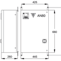 AN80 series is made for wall installation, cable entry form bottom, maintenance form front plant, capacitors climbed on threaded plate, metal case in a strong steel sheet and painted with epoxy resin RAL7035.