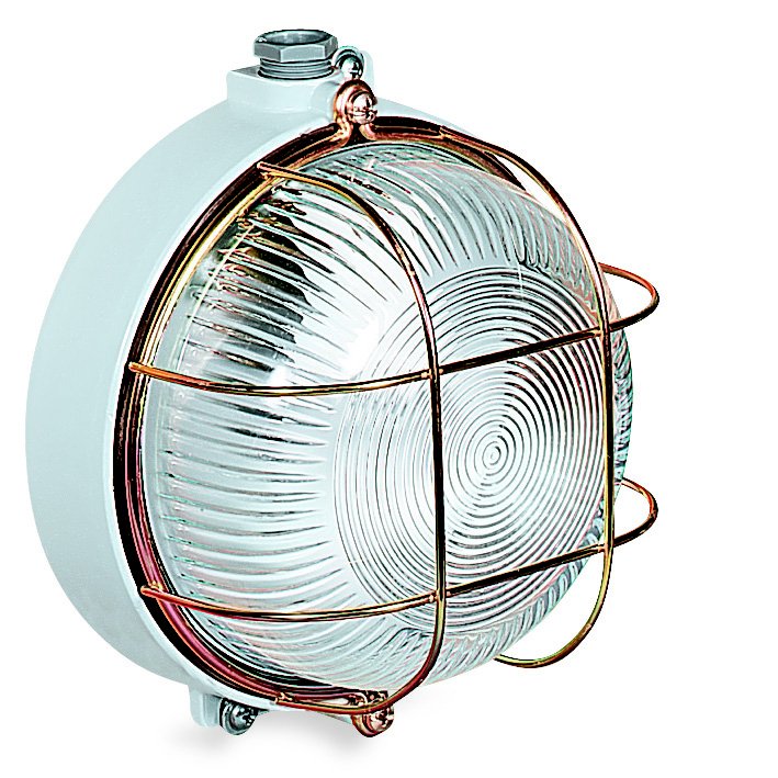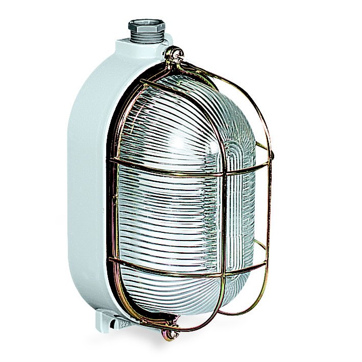 - Oval light fixtures in aluminium alloy with protective cage in aluminium IP66