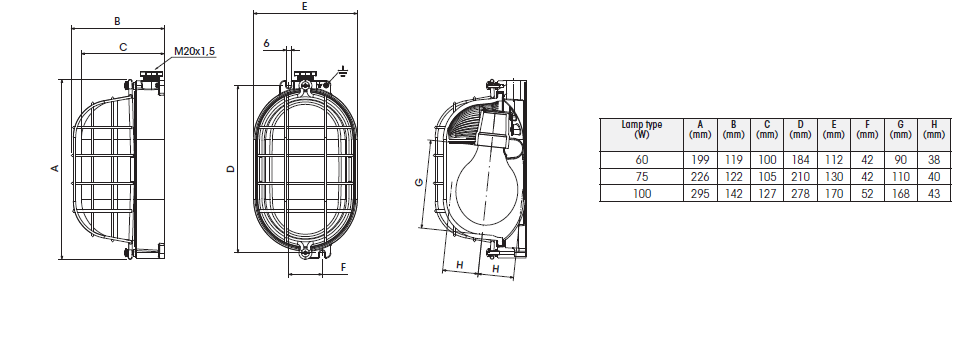 - Oval light fixtures in aluminium alloy with protective cage in steel IP66