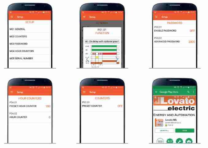 The LOVATO NFC App makes programming extremely intuitive, rapid and flexible thanks to a graphic interface that displays selected functions and parameters directly on the screen of the Android smart device (smartphone or tablet), eliminating the need to consult the manual.