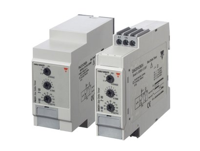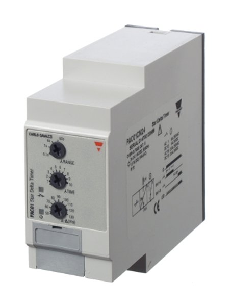 Special multi-voltage (and 380-415 V AC) Star-Delta timers with 4 selectable time ranges within 0.1 s and 600 s., for mounting on 22.5 mm DIN-rail housing or 36 mm plug housing.