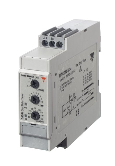Multi-voltage (and 380-415 V AC) Star-Delta timers for Din-rail mounting or for 11 pins base. Carlo Gavazzi