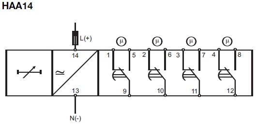 - HAA14QM24 relay output: 8 Α (4 x ΝΟ + 4 x NC)