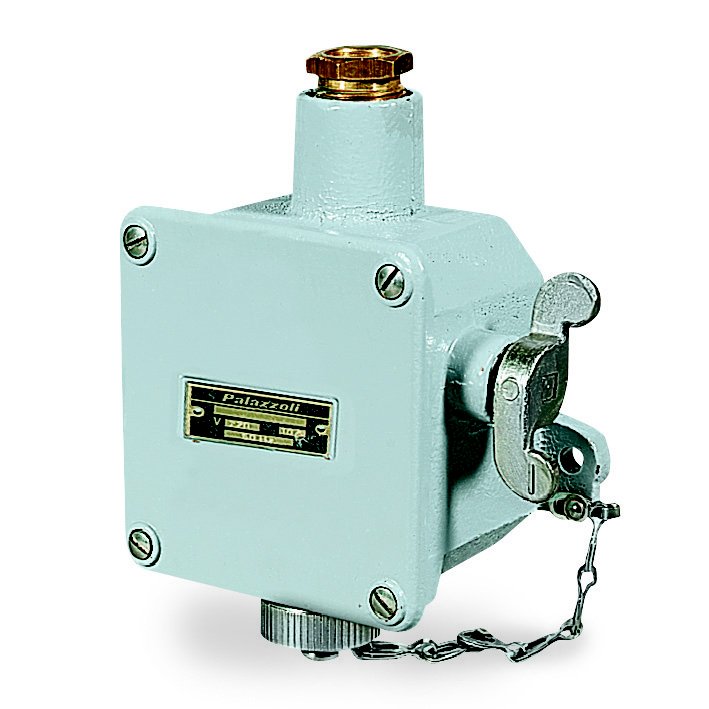 - Switched interlocked sockets UNAV 2169 in marine grey painted brass with UNAV 1948 cable glands 50-60Hz IP66