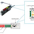 Programmable fiber optic amplifier dimensions 10 x 33 x 80 mm and high curvature plastic optical fibers